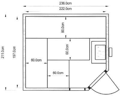 Saunagröße: 236 cm x 211 cm x 220 cm - Eckeinstieg