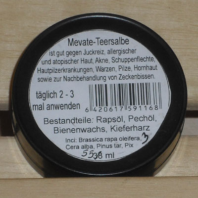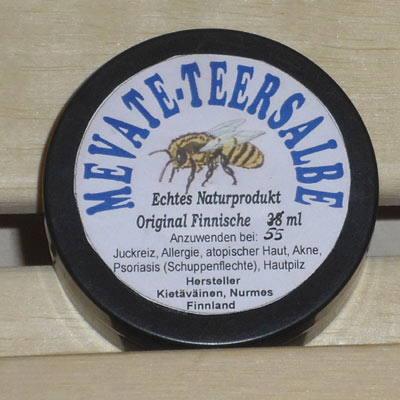 Teersalbe "Mevate" kann als Bienenwachssalbe nützlich sein bei Juckreiz, Hautirritationen, Warzen oder Hornhaut.