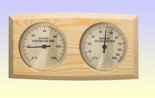 bestehend aus Sauna-Thermometer und Sauna-Hygrometer, Holzfassung,