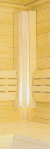 Sauna-Lichtsäule für Eckeinbau, Integration in alle Rückenlehnen-Ausführungen möglich,